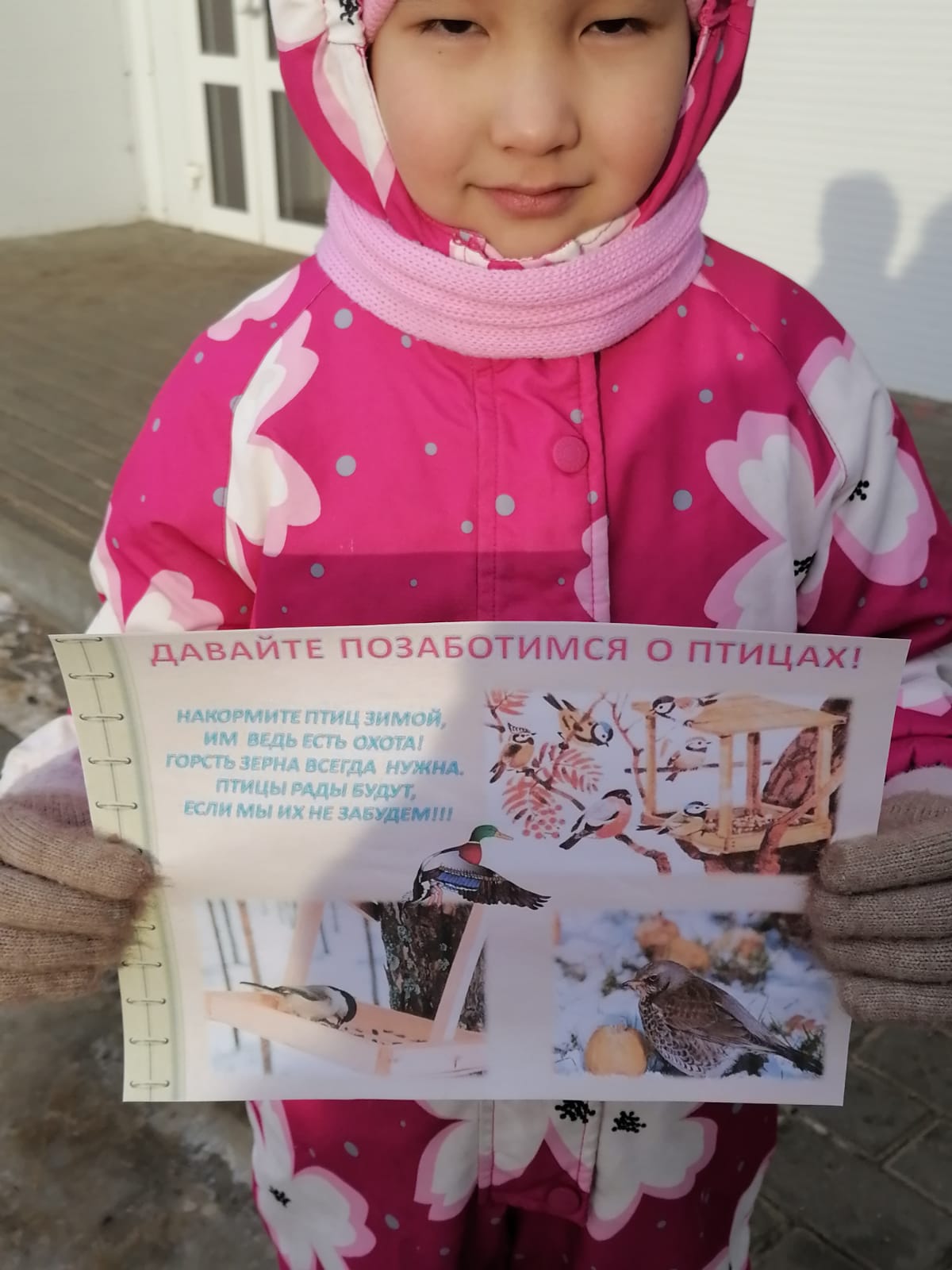 Большое внимание в нашем ДОУ уделяется экологическому воспитанию детей. Дети знают много интересного о жизни птиц. Наступила зима и для птиц это сложный период. Им надо помочь. Воспитатель Вязовская М.Ю. организовала экологическую акцию. Вместе с детьми они прошли по улице Московская и расклеили в многолюдных местах листовки "Давайте позаботимся о птицах".