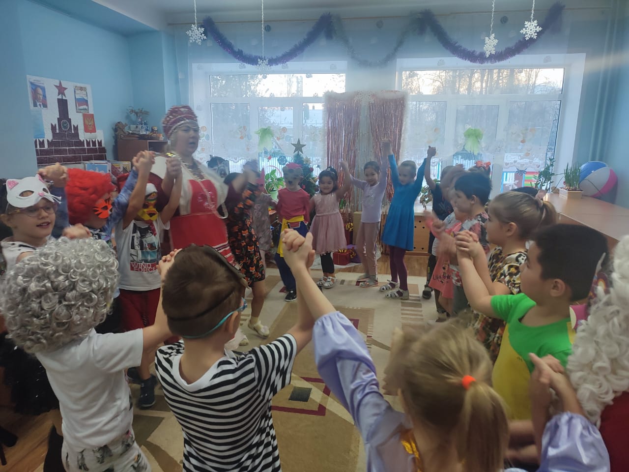 Праздник Рождества Христова любим нами так же, как и Новый год. Он приносит в дом радость и добро. И, конечно, не обходится без колядования. Колядки и щедровки - веселые песни, которые являются неотъемлемой частью древнего обряда на Рождество. Ряженые дети подготовительной группы №1 с воспитателем Емченко Е.В. сходили в гости в другие группы, чтобы вместе с песнями и плясками принести хорошее настроение. Взамен они получили сладкое угощение и пожелания здоровья, мира и добра.