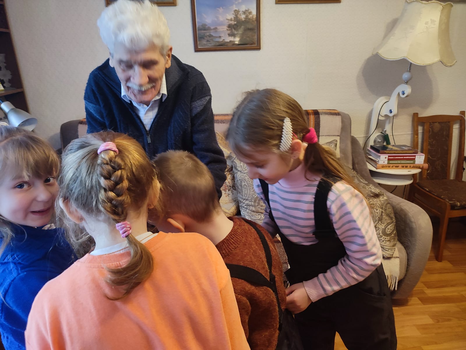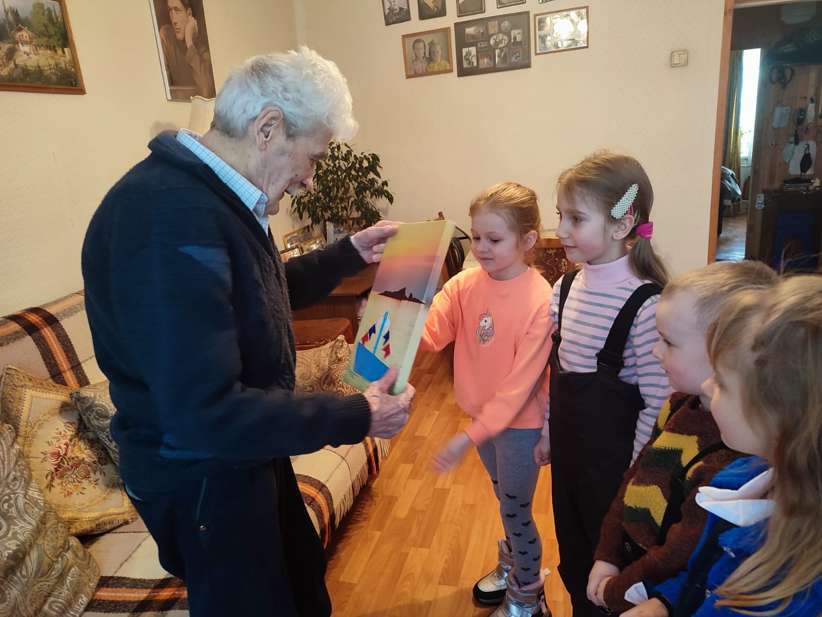 Накануне Дня защитника Отечества воспитанники подготовительной группы "Любознайки" сходили в гости к ветерану ВОВ Масалову Анатолию Денисовичу. Такие встречи стали уже традицией. Дети подготовили поздравительные стихи, песни. Вручили памятный подарок Анатолию Денисовичу. Беседы с ветераном оставляют яркие эмоции в сердцах детей.