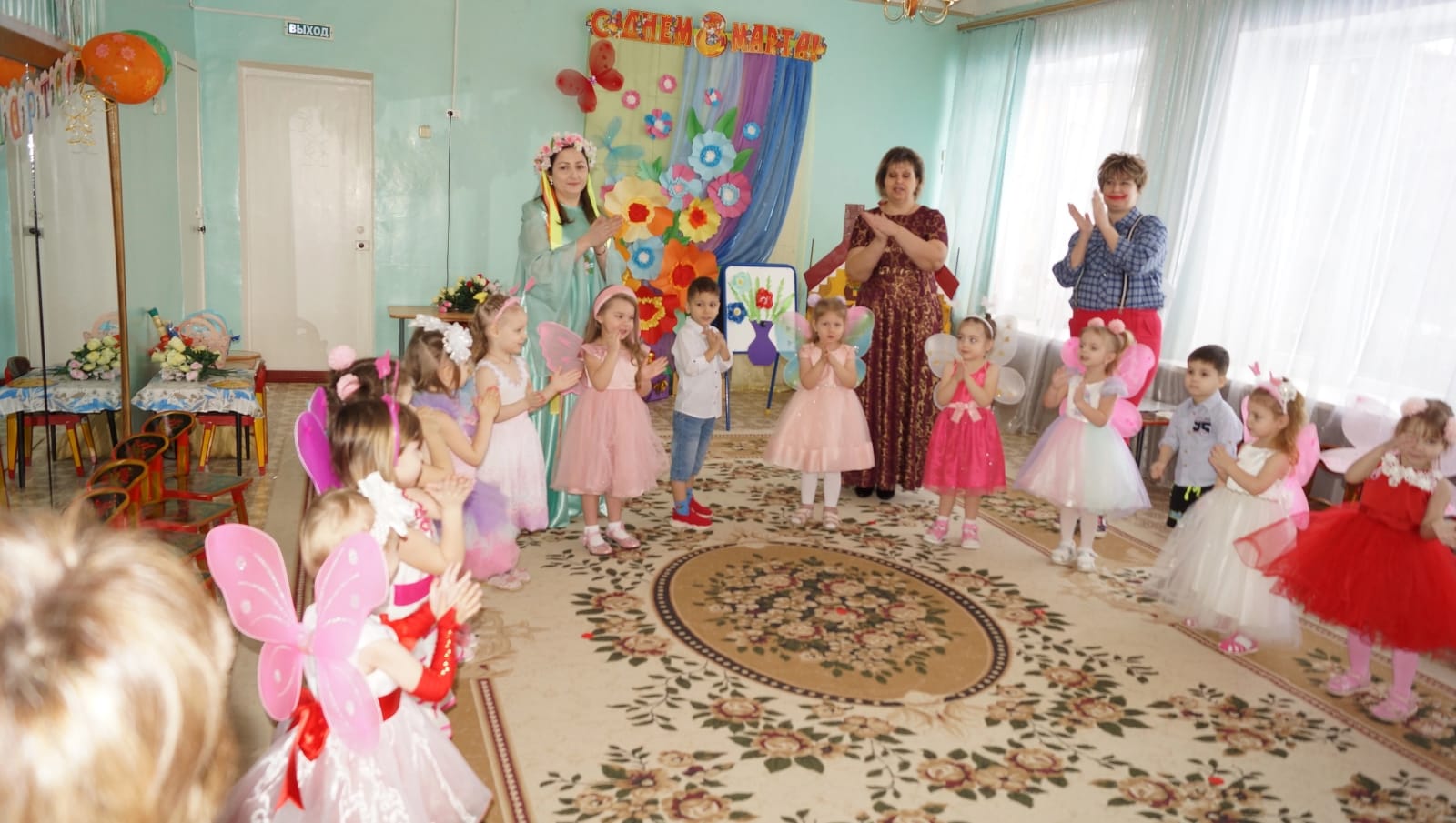 Трогательное поздравление для мам подготовили малыши 2-й младшей группы. Девочки-бабочки порхали в танце над цветочками, а мальчики-джентельмены прочитали красивые стихи для всех женщин. Теплая душевная атмосфера царила в зале и каждая мамочка унесла с праздника подарок, сделанный руками ее ребенка.