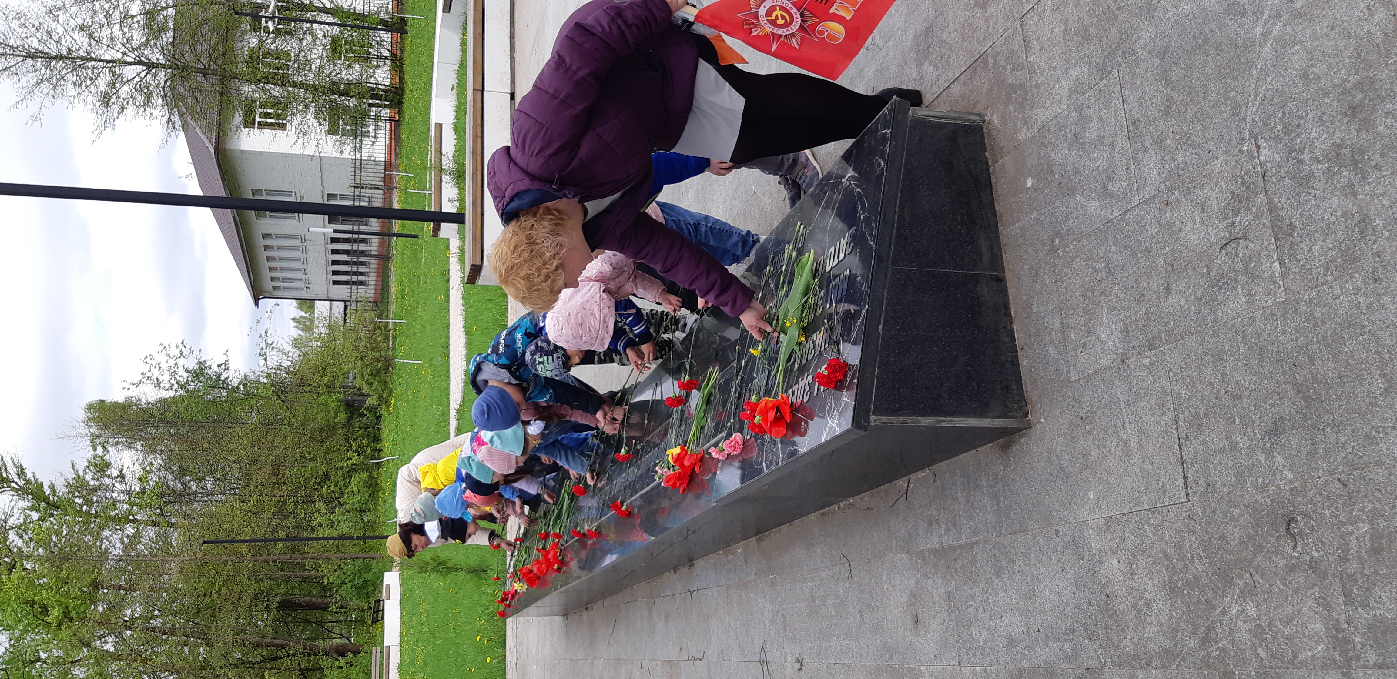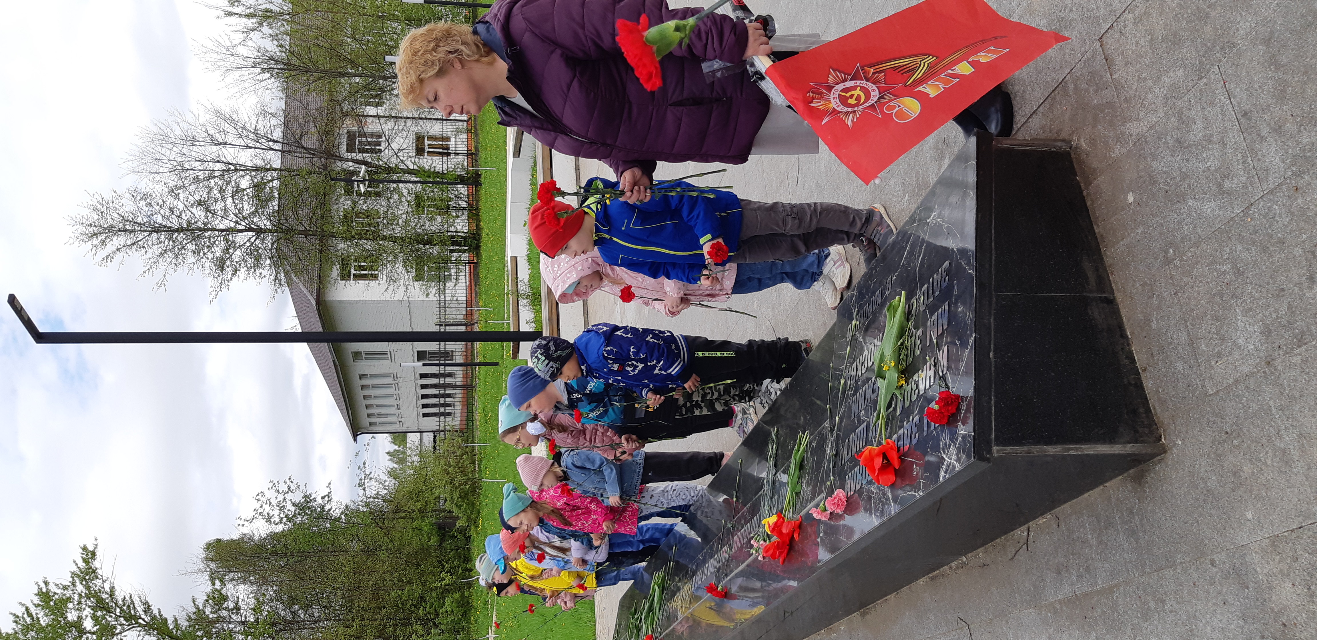 После праздничного концерта в ДОУ воспитанники посетили братскую могилу в сквере Памяти на ул. Коммунальная для возложения цветов.