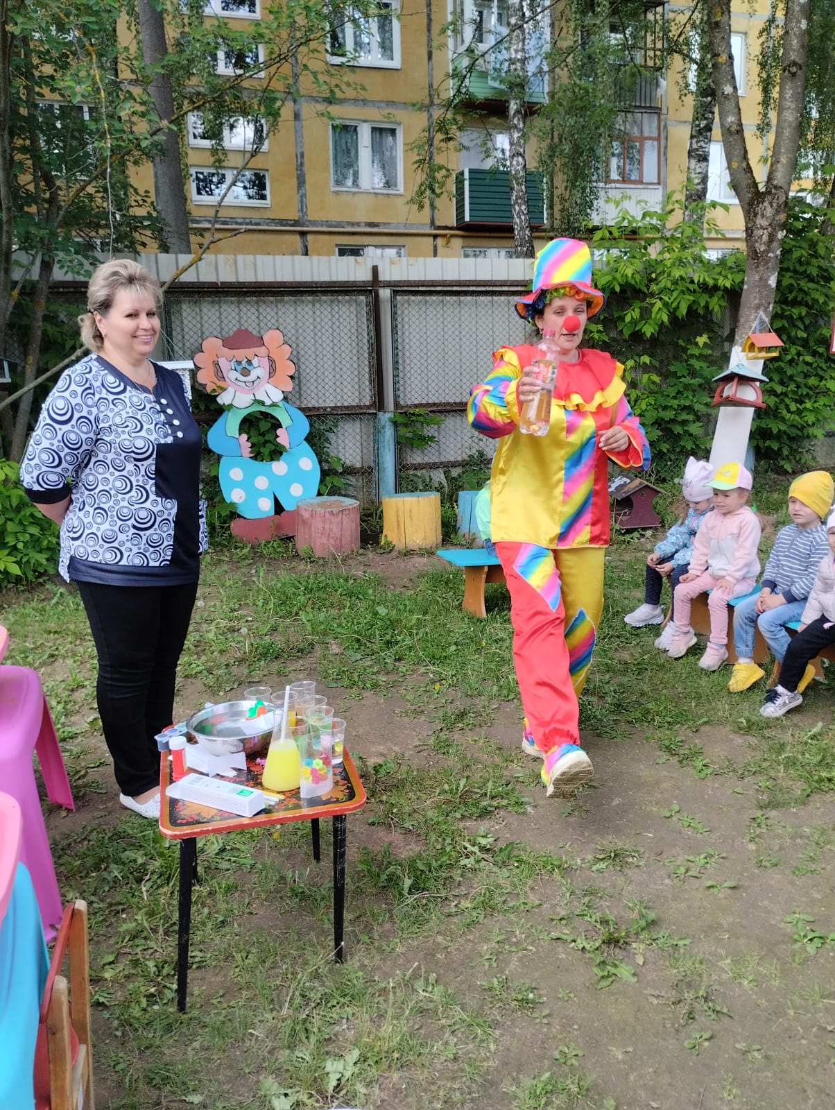 Лето - это маленькая жизнь. И провести ее нужно с пользой. Маленькие дети познают мир, исследуя ее. Сегодня в гости к малышам пришел клоун Клепа и с помощью различных экспериментов познакомил ребят с простейшими свойствами предметов.