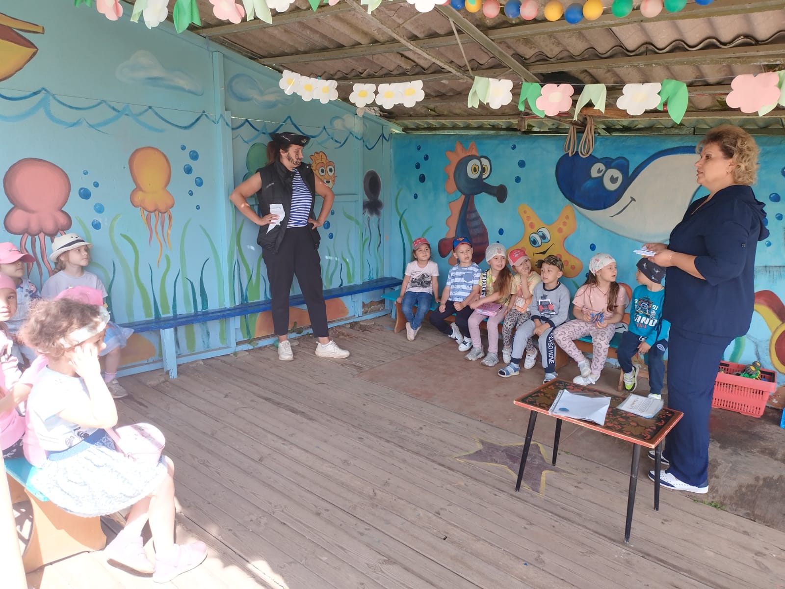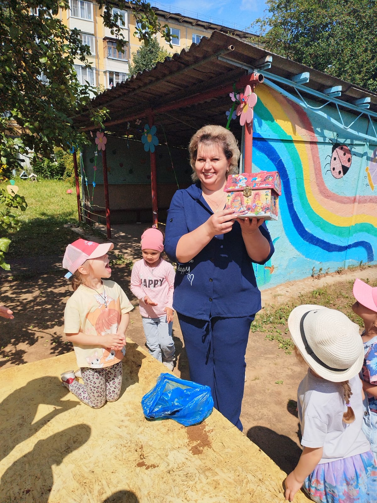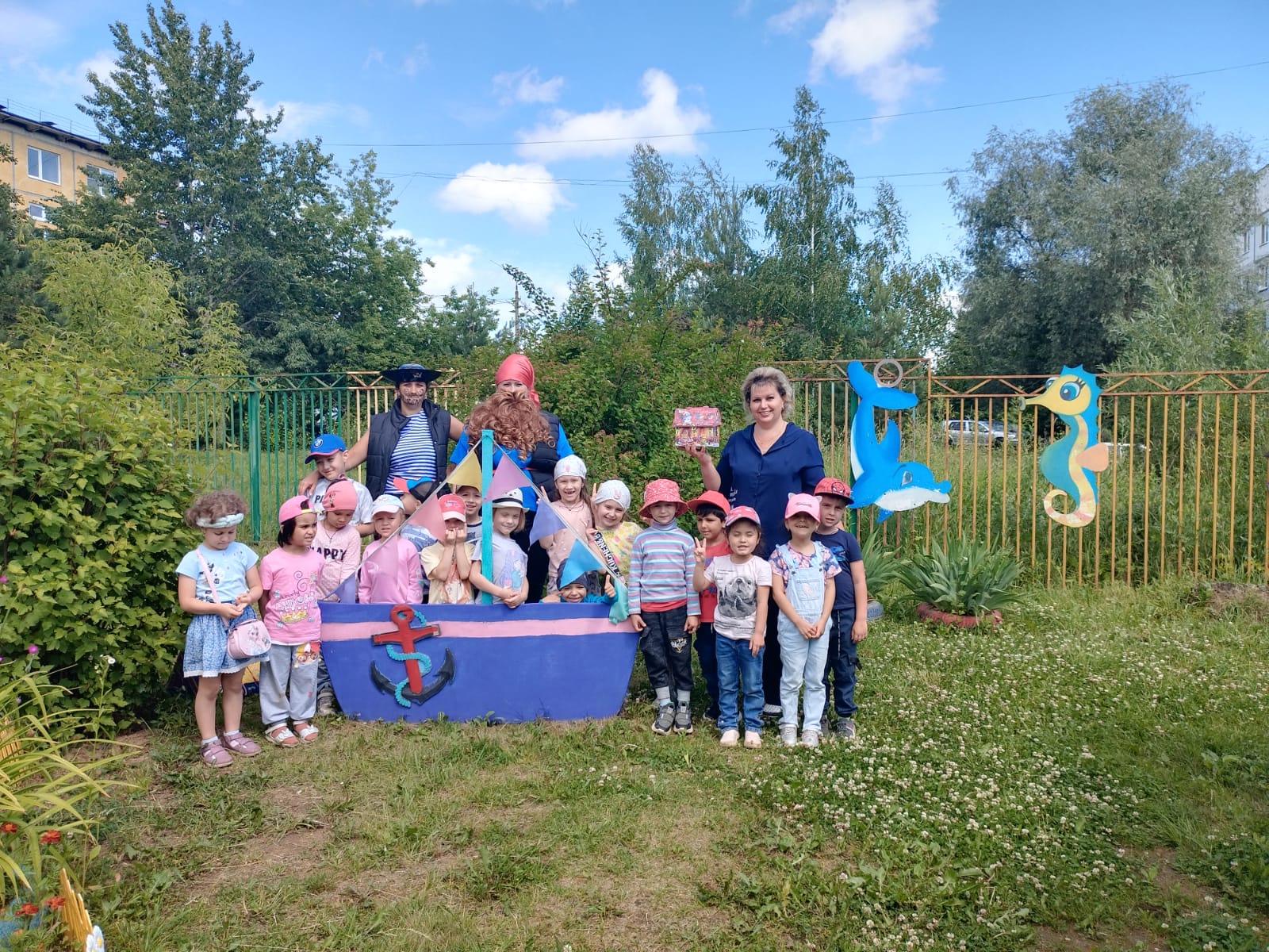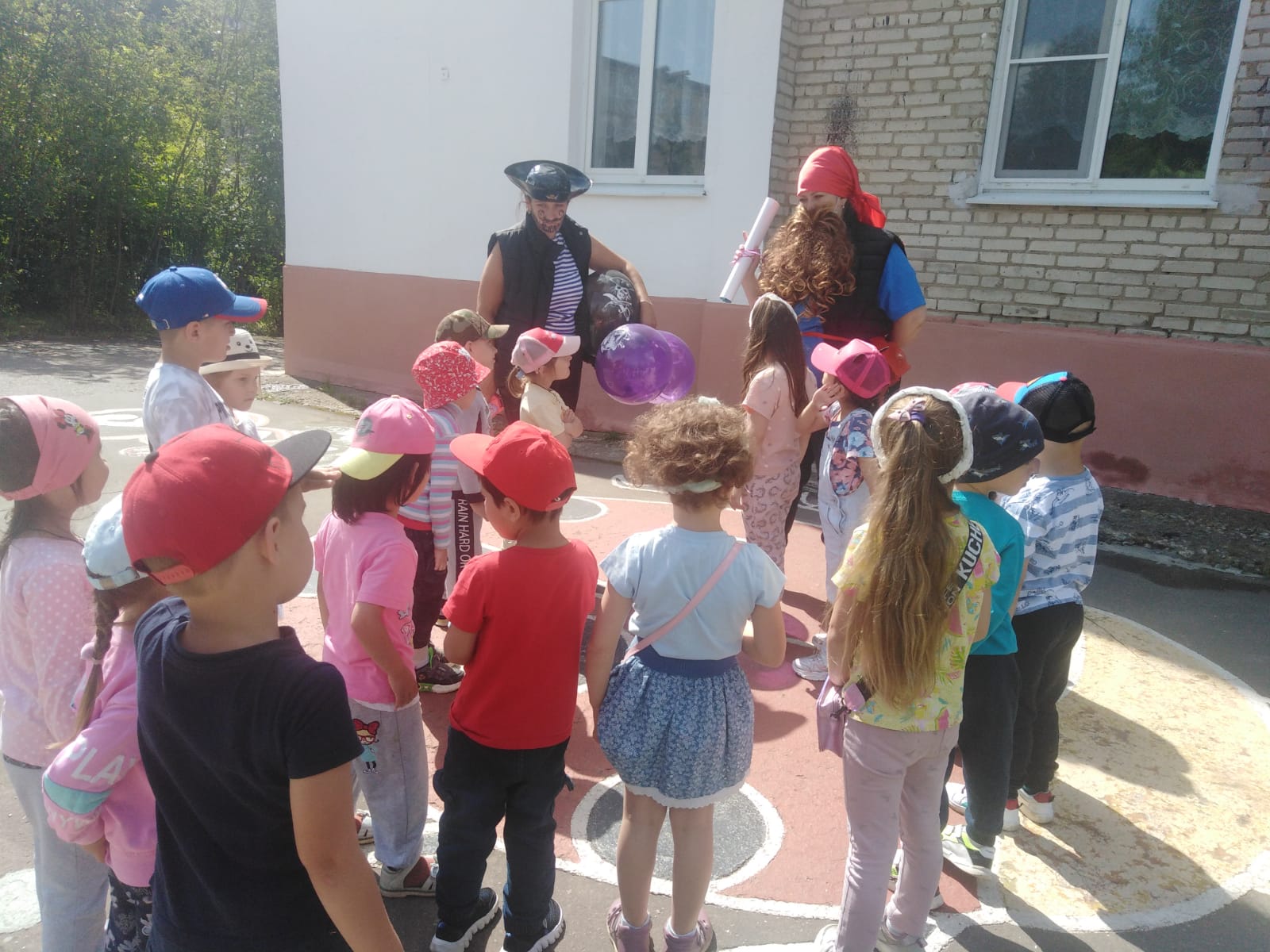 Лето- время путешествий. Сегодня к ребятам заглянули веселые друзья - капитан Гарри и пират Джек, которые рассказали о спрятанных сокровищах. Все вместе отправились на их поиски, путешествуя по разным островам. Н а пути встретилось множество препятствий, но дружные команды справились, показав силу, ловкость и смекалку. Ребята нашли все части карты и откопали клад.