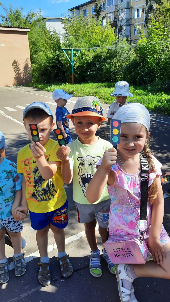 С ранних лет детишек необходимо обучать правилам дорожного движения. В детском саду уделяется особое внимание безопасности на дорогах. 4 августа в нашем учреждении провели праздничное развлечение "В гостях у Светофора". Воспитатель Емченко Е.В. в игровой форме повторила и закрепила с детьми правила безопасного передвижения на дорогах. Ребята усвоили, что светофор - надежный друг и помощник. Светофор подарил детишкам свою маленькую копию.