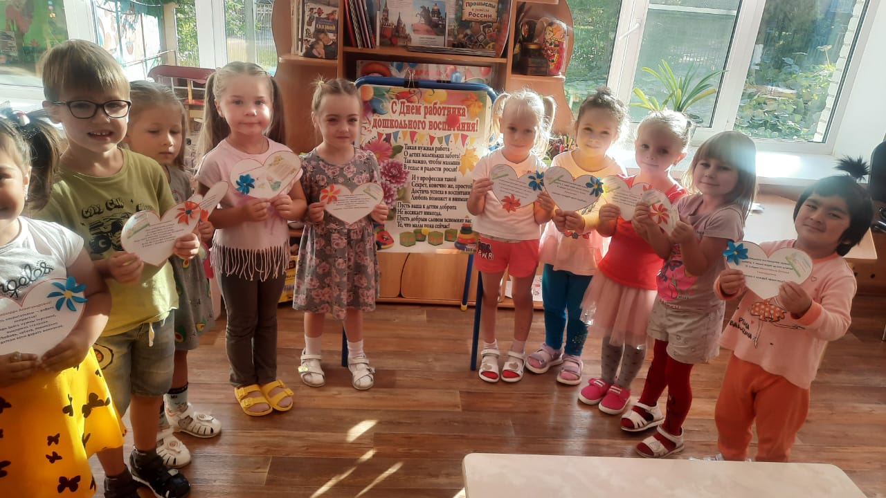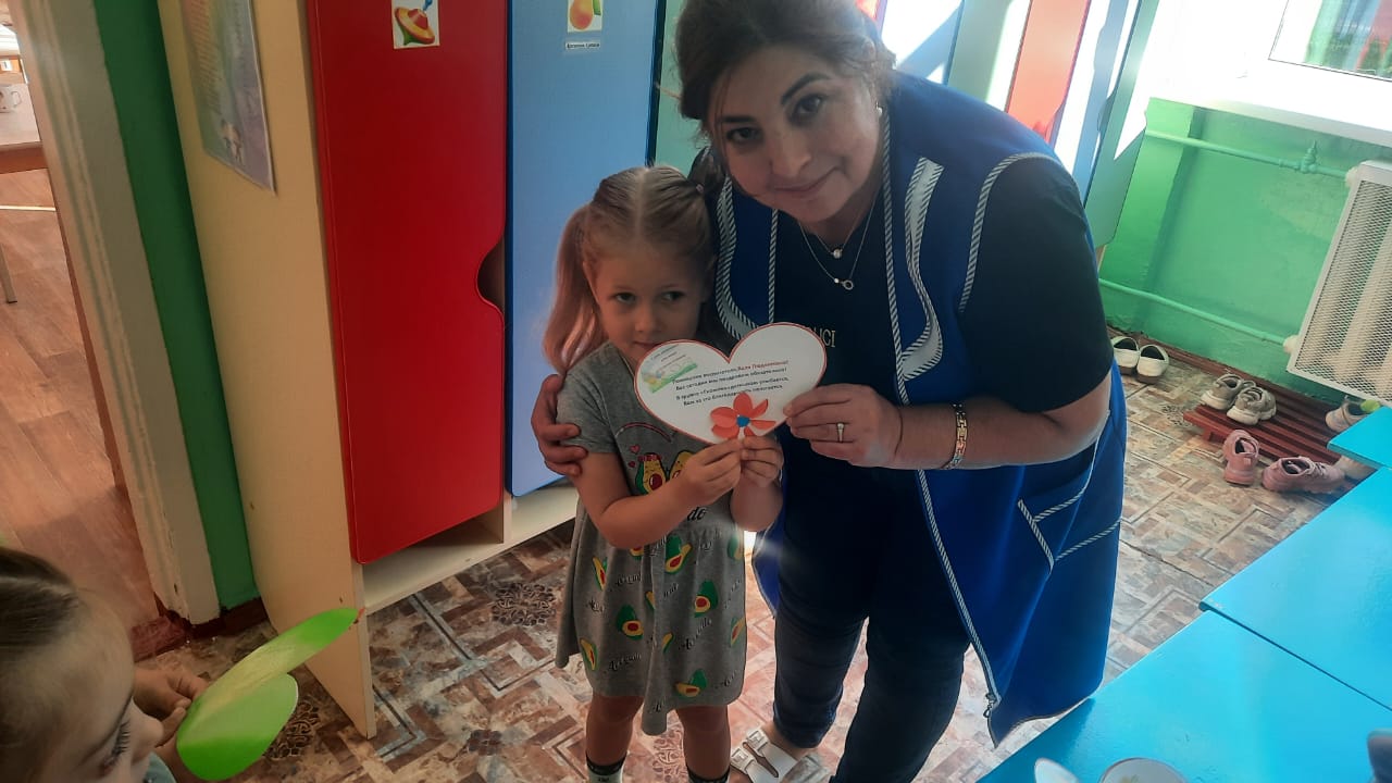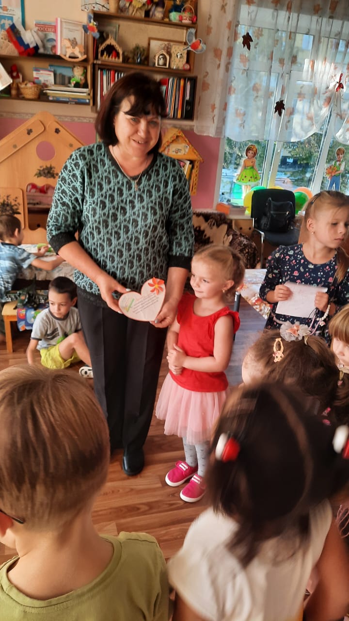27 сентября - День воспитателя и всех дошкольных работников. Дети средней группы с воспитателем Нуцалхановой А.Х. изготовили поздравительные открытки и вручили их всем сотрудникам детского сада.