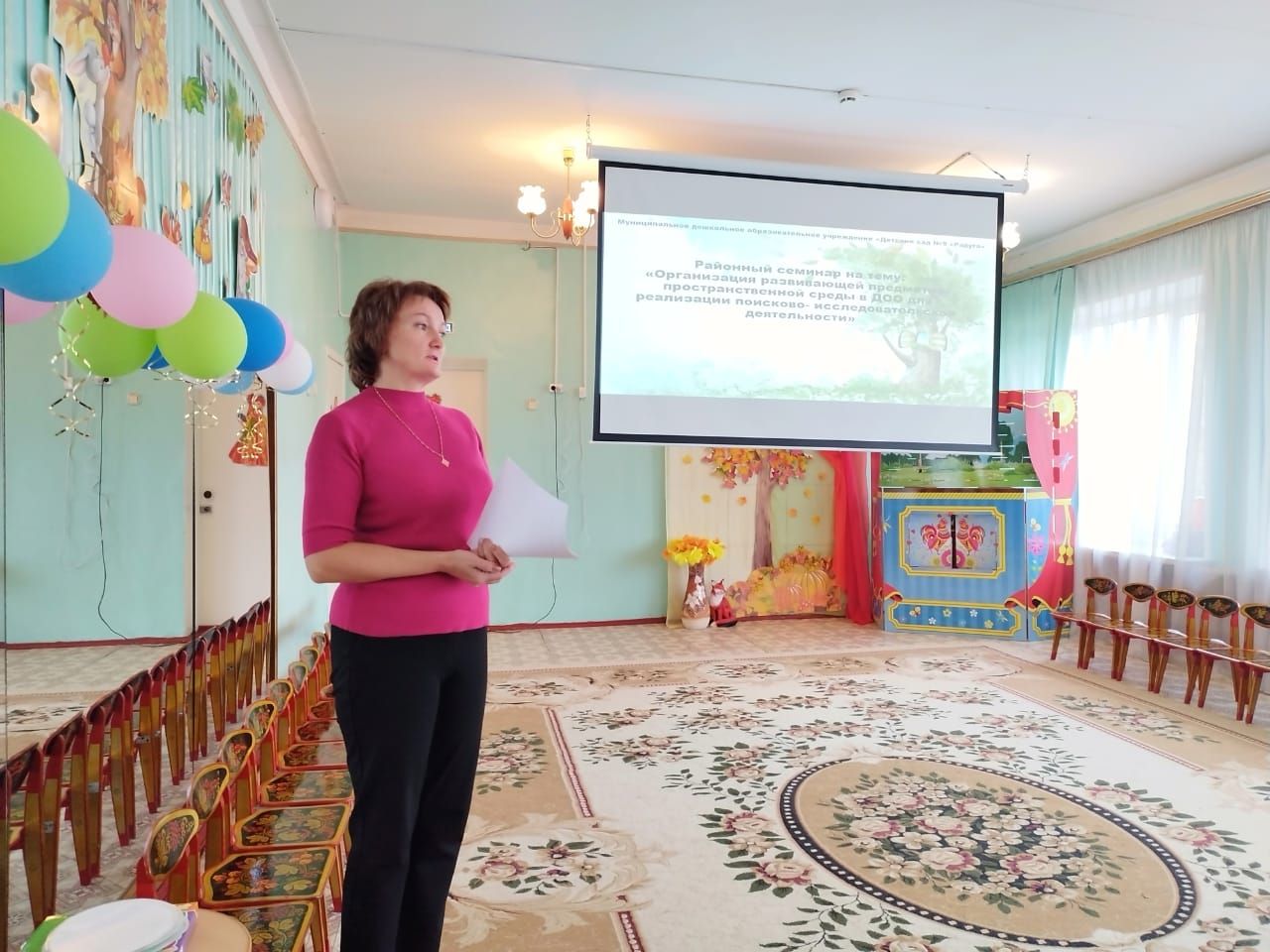 19 октября состоялся районный семинар для педагогов Боровского района "Организация развивающей предметно-пространственной среды ДОО для реализации поисково-исследовательской деятельности". Присутствующие познакомились с современными требованиями к организации РППС, а воспитатели Алтунина Н.Ю., Козлова О.Г. и Алтунина А.Н. сада презентовали игровые пособия для развития у детей познавательно-поискового интереса, используемые в работе с детьми.