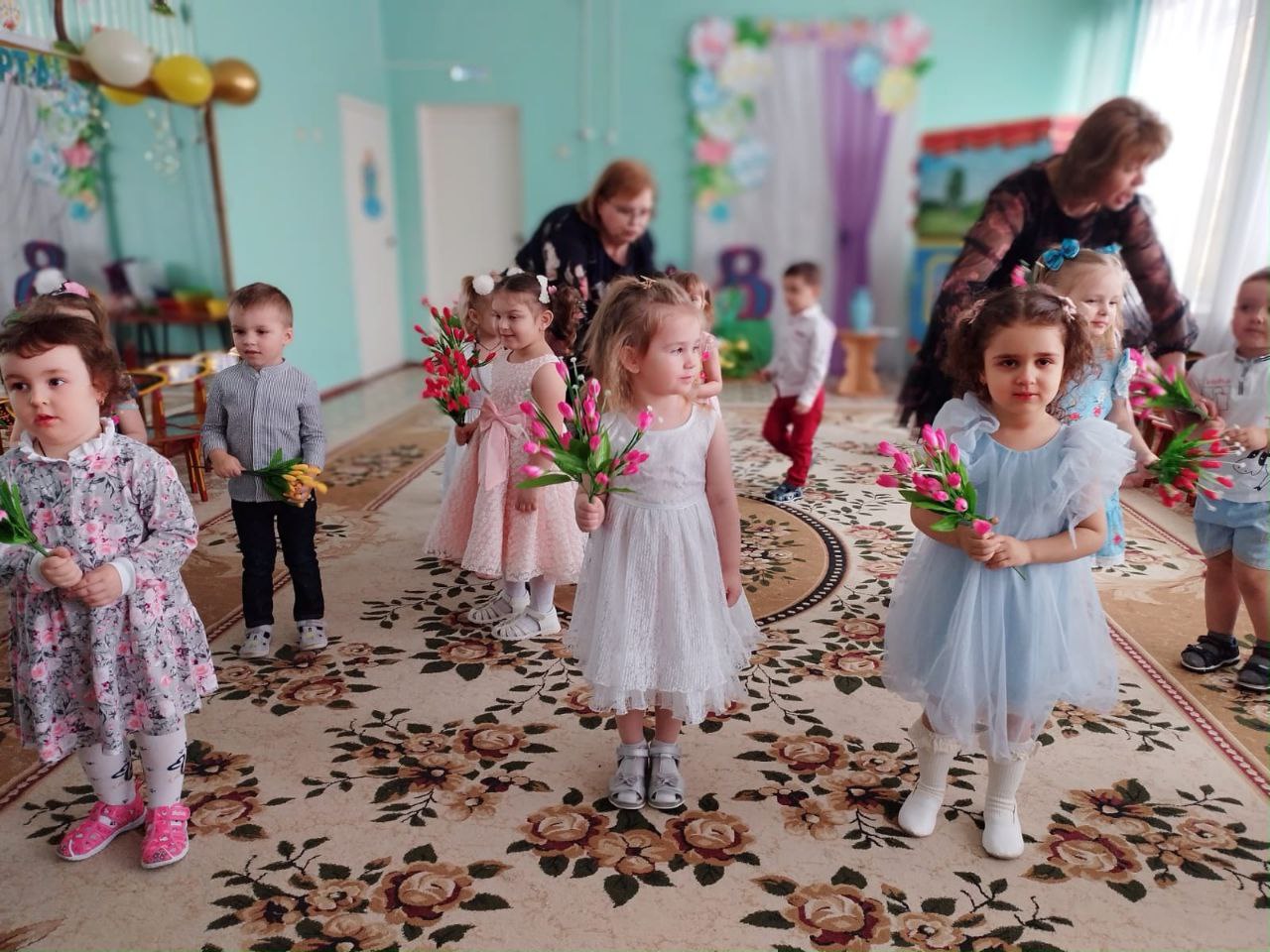 В детском саду прошли праздничные утренники, посвященные самому прекрасному весеннему празднику 8 Марта. Все ребята подготовили трогательные песни и стихотворения, веселые сценки и зажигательные танцы. Мамы и бабушки поддерживали своих деток бурными аплодисментами.