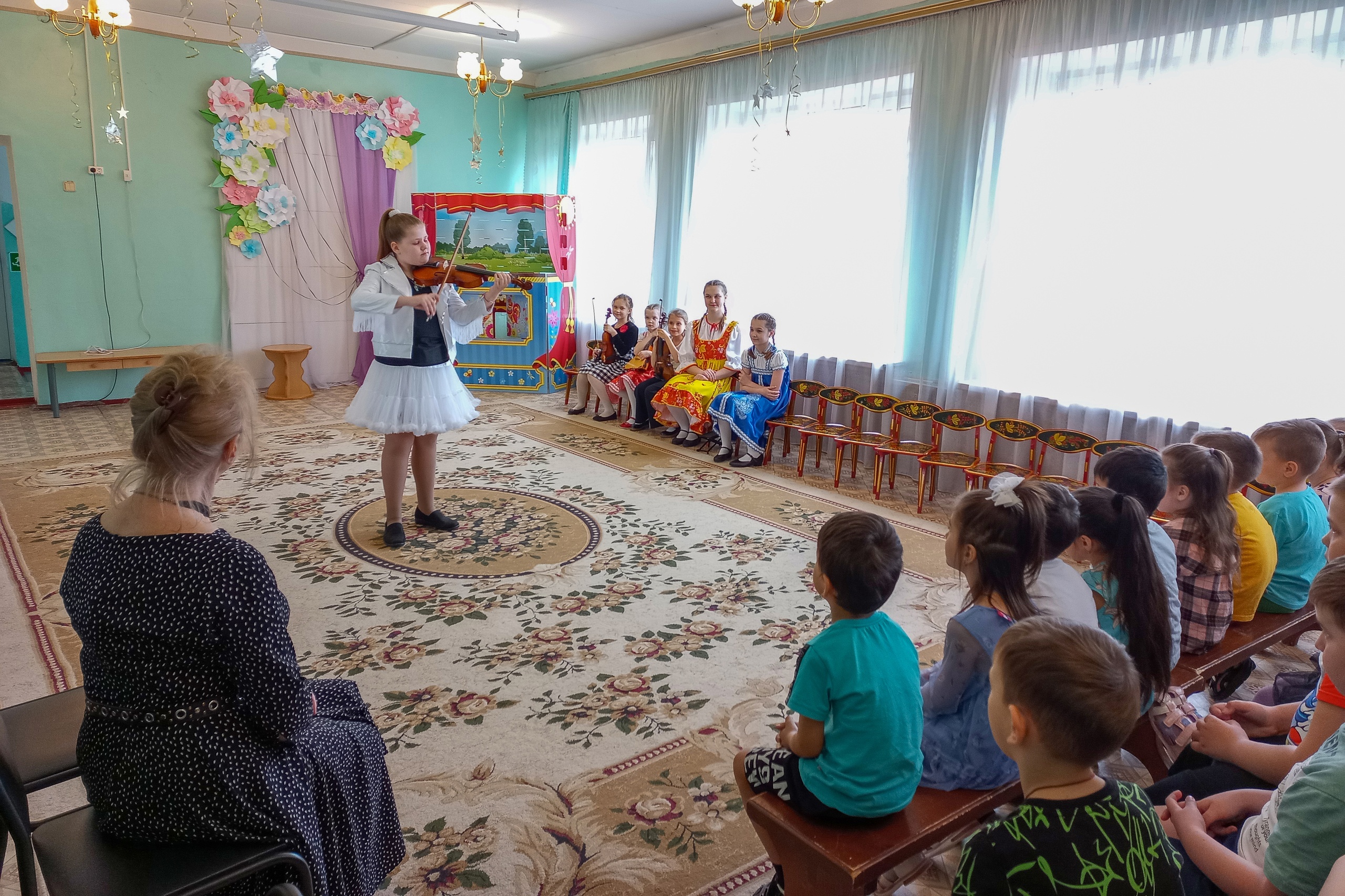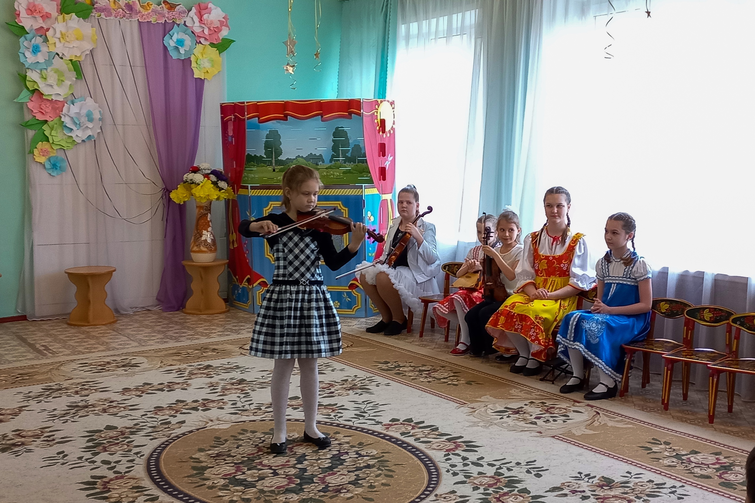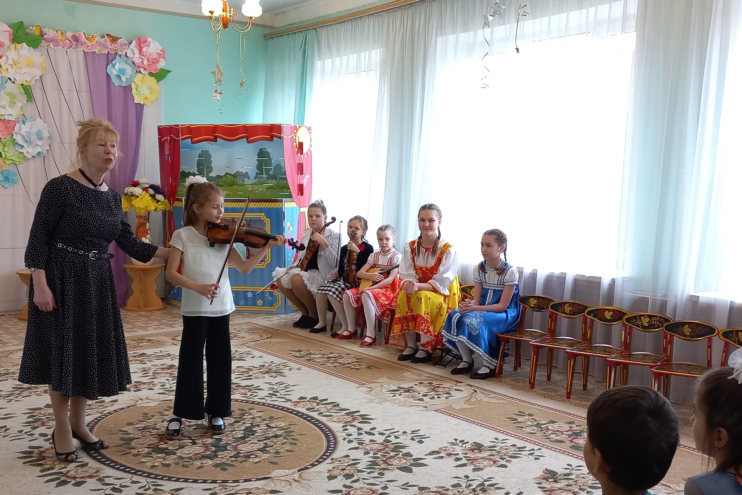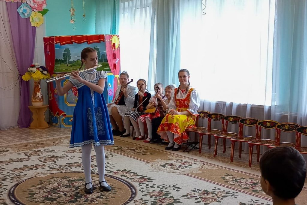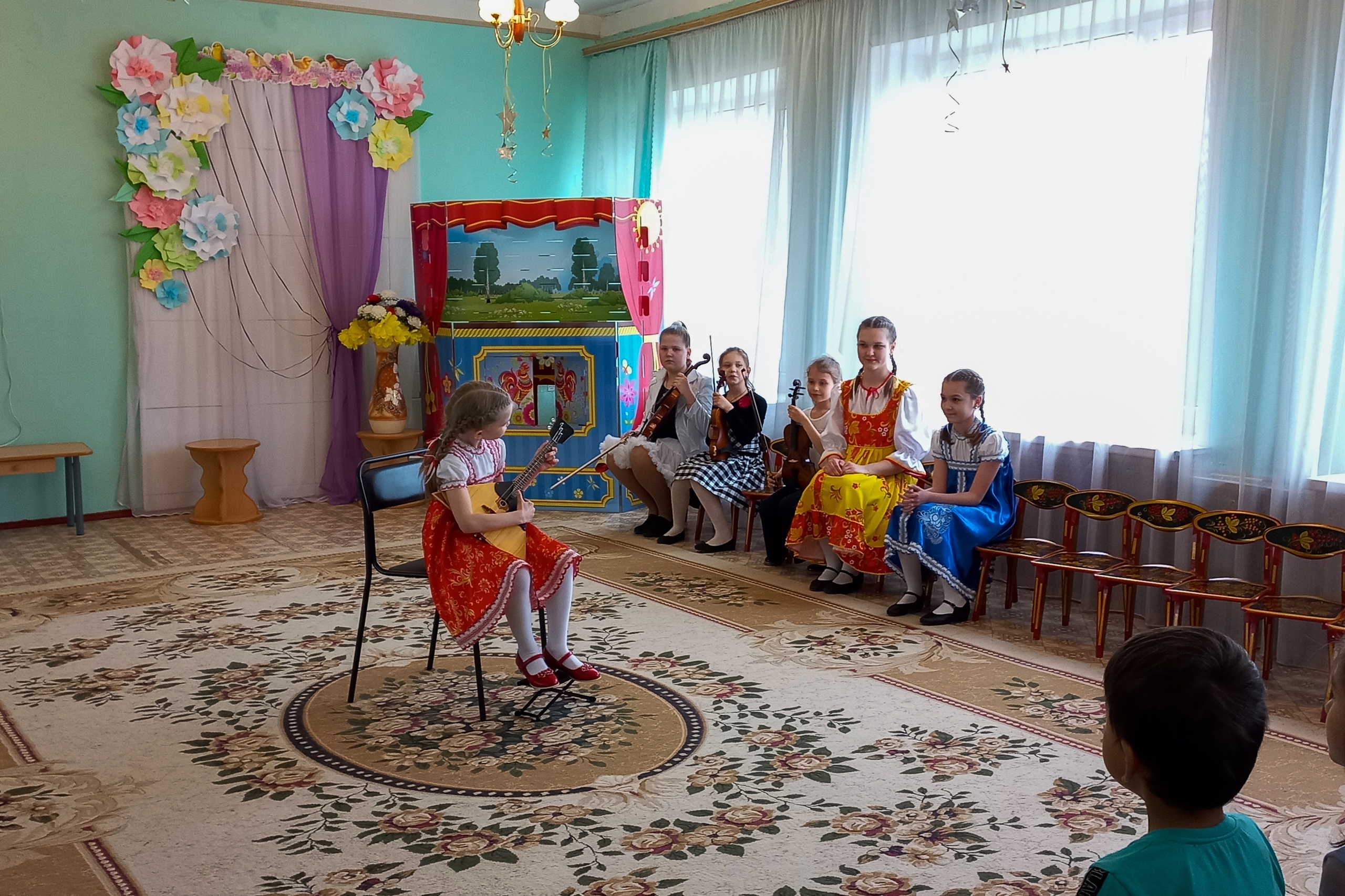 Сегодня в гости к нашим ребятам пришли ученики Балабановской школы искусств. Они исполнили музыкальные произведения на разных музыкальных инструментах, такжедети услышали вокальное исполнение. Такие встречи с живой музыкой радуют всех: и юных зрителей, и юных исполнителей.