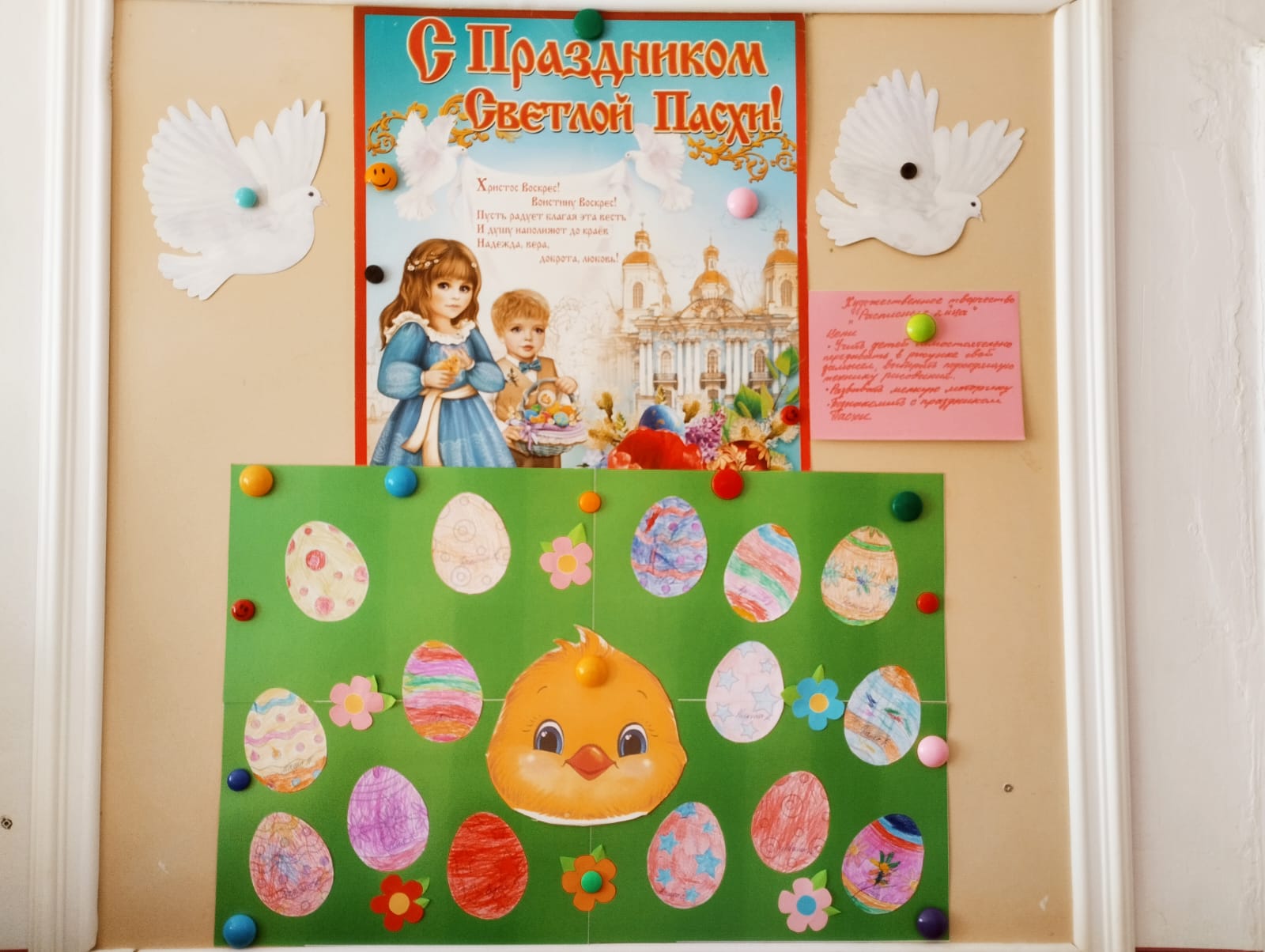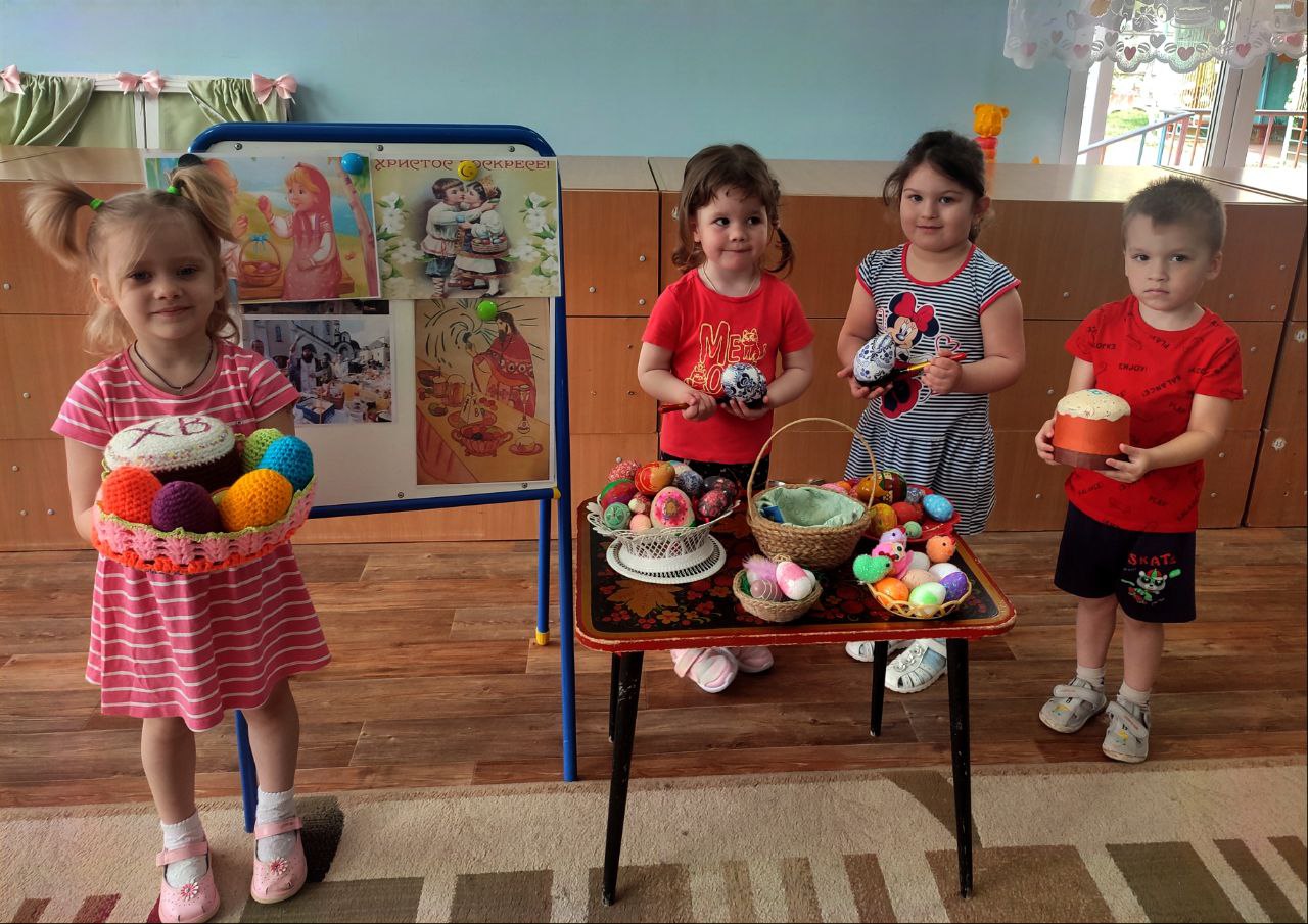 5 мая православные христиане отметили Пасху. Накануне праздника прошли мероприятия, посвященные этому празднику. Дети вспоминали историю праздника, делали аппликации, рисовали яички. Родители вместе с детьми готовили поделки, делились своими семейными традициями празднования Пасхи. А в понедельник ребята устроили обмен угощениями и играли в традиционные игры с крашеными яйцами.