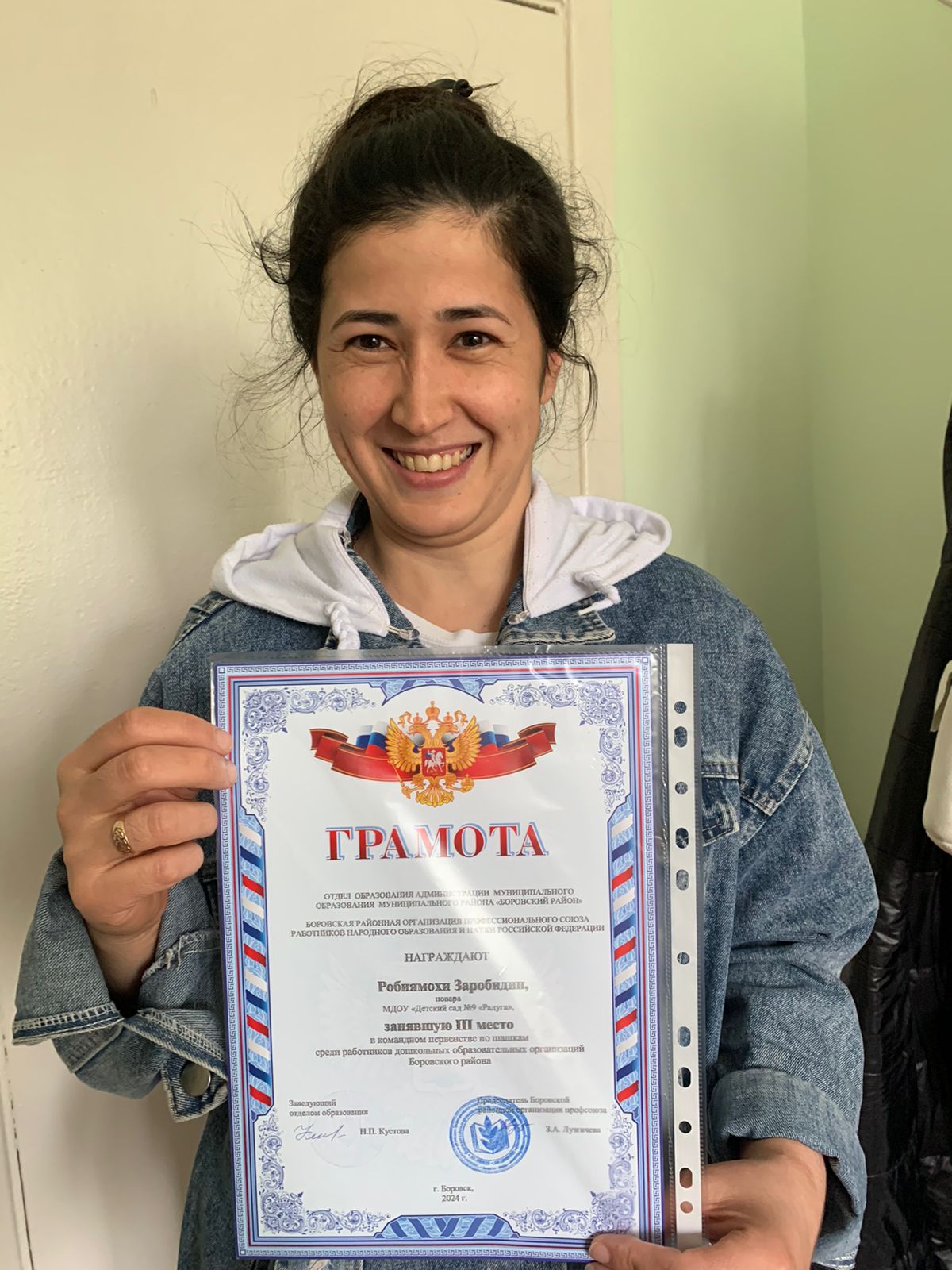27 марта в Боровском районе состоялись соревнования по шашкам среди работников образовательных организаций. От нашего детского сада участвовали Робиямохи Заробидин и Фирсова Светлана Вячеславовна. Они достойно представили нашу организацию, заняв III место. Поздравляем наших коллег, гордимся ими.